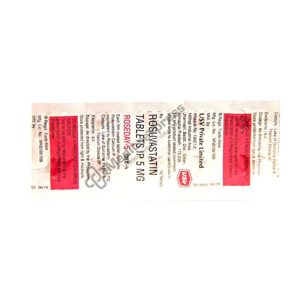 Roseday 5mg Tablet 15s is a member of the statin drug class, which lowers levels of glycerides and bad cholesterol (low-density lipoprotein, or LDL), lowering the risk of heart attack and stroke in the future.Disclaimer:For More Information Contact Your Physician