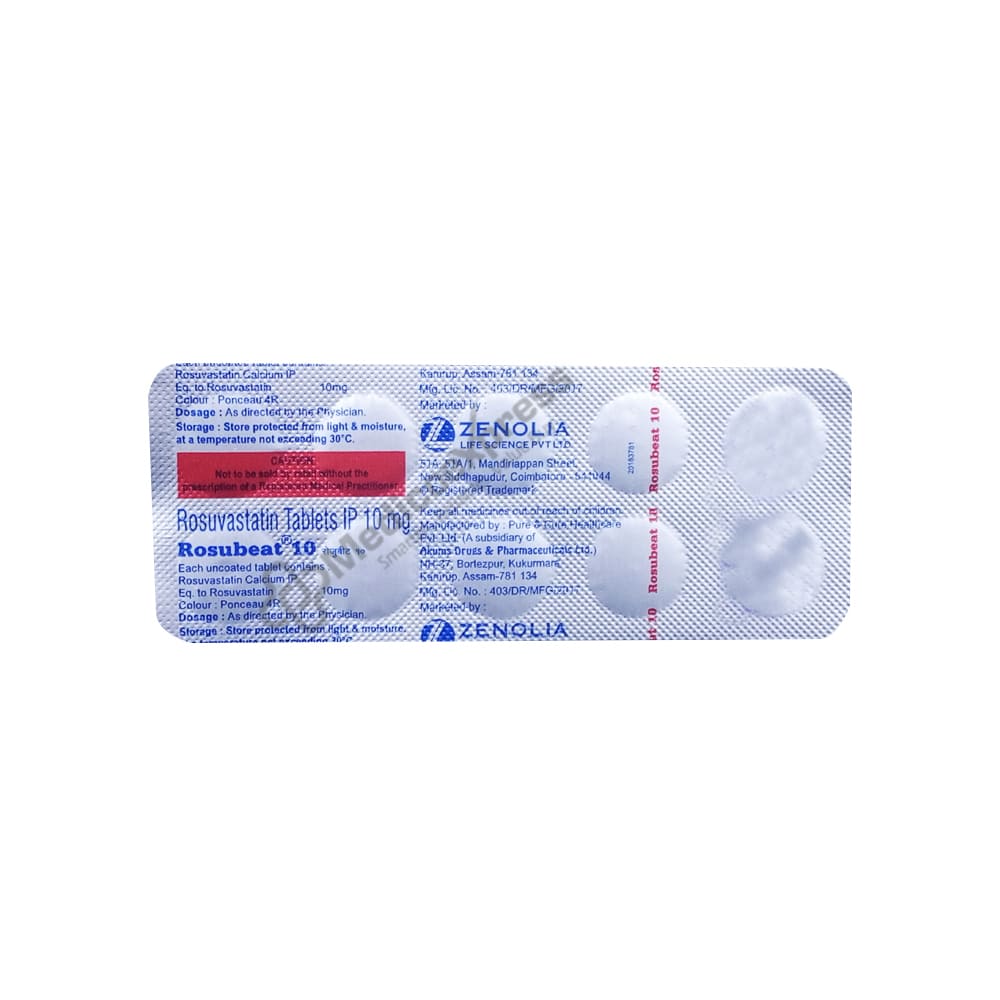 Rosubeat 10 Tablet 10s is a member of the statin drug class, which lowers levels of glycerides and bad cholesterol (low-density lipoprotein, or LDL), lowering the risk of heart attack and stroke in the future.Disclaimer:For More Information Contact Your Physician