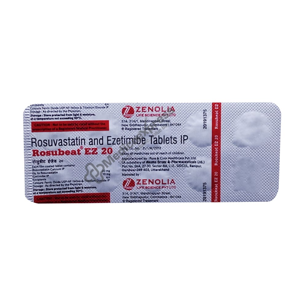 Rosubeat ez 20mg tablet 10’s belongs to the class of drugs known as hmg-coa reductase inhibitors (statins) and sterol absorption inhibitors. The primary purpose of rosubeat ez 10mg tab 10's is to treat excessive cholesterol levels.Disclaimer:For more information contact your physician