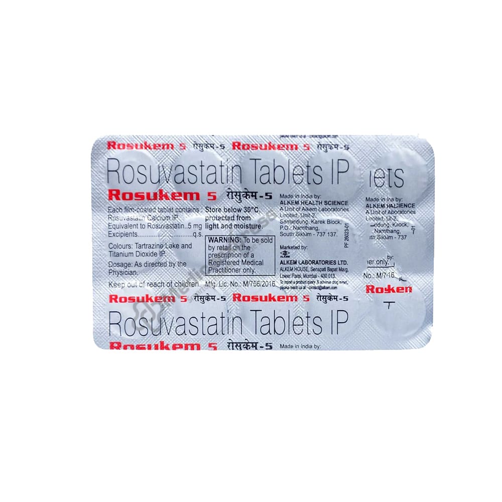 Rosukem 5mg Tablet 15s is a member of the statin drug class, which lowers levels of bad cholesterol (low-density lipoprotein, or LDL) and triglycerides to lower the risk of future heart attacks and strokes. When there is an excess of the wrong kind of cholesterol balance in the blood, it is called hyperlipidemia or dyslipidemia, and it raises the blood cholesterol level. Your arteries become narrowed and clogged when your blood cholesterol level is high, which eventually leads to heart diseases like stroke and heart attack. By inhibiting liver enzymes, Rosukem 5 mg Tablet 15s prevent the liver from producing as much cholesterol. The liver's ability to absorb and break down circulating cholesterol is improved with Rosukem 5 Tablet 15.Disclaimer:For more information contact your physician.