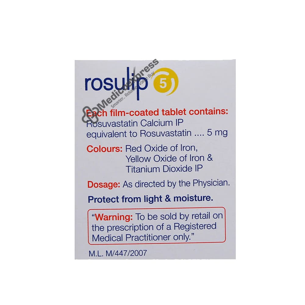 Rosulip 5 Tablet 15 belongs to the statin class of medications, which reduces bad cholesterol (low-density lipoprotein-LDL) and glyceride levels, lowering the risk of future heart attack and stroke.Disclaimer:For More Information Contact Your Physician