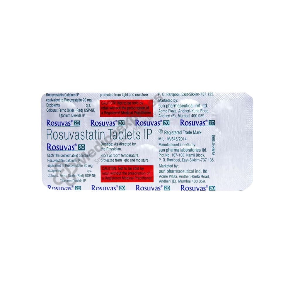 Rosuvas 20mg Tablet 10s is a member of the statin drug class, which lowers levels of glycerides and bad cholesterol (low-density lipoprotein, or LDL), lowering the risk of heart attack and stroke in the future.Disclaimer:For More Information Contact Your Physician