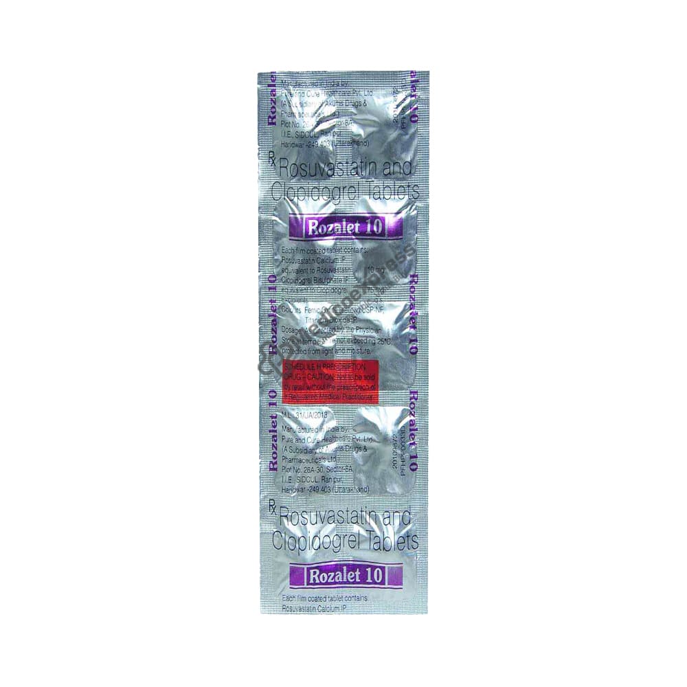 Rozalet 10 Tablet 10's is a combination drug made up of a blood-thinning agent and a cholesterol-lowering agent that is primarily used to prevent future heart attacks and strokes.Disclaimer:For More Information Contact Your Physician