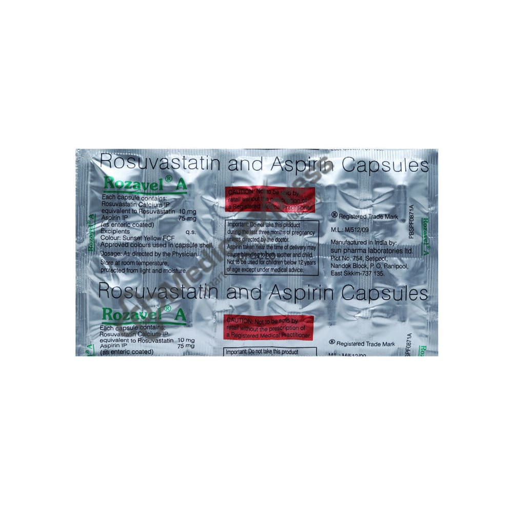 Rozavel A Capsule 10 is a blood-thinning and cholesterol-lowering agent that is primarily used to prevent myocardial infarction (heart attack), stroke, and peripheral vascular disease.Disclaimer:For More Information Contact Your Physician