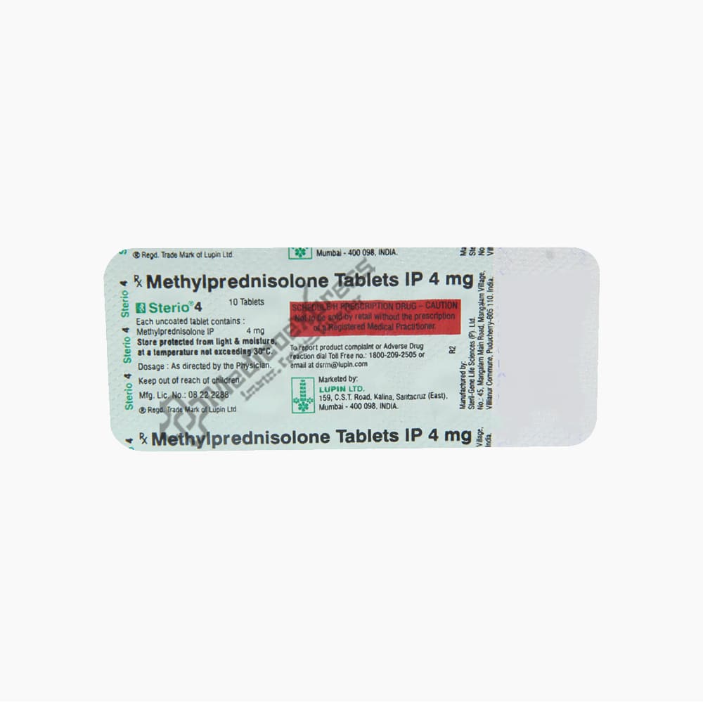 Sterio 4 Tablet 10's Contain The Corticosteroid Prednisolone. Corticosteroids And Anabolic Steroids Are Not The Same Thing. It Relieves Symptoms By Preventing The Release Of Chemicals That Cause Inflammation (Redness And Swelling) And Allergies.Disclaimer:For More Information Contact Your Physician