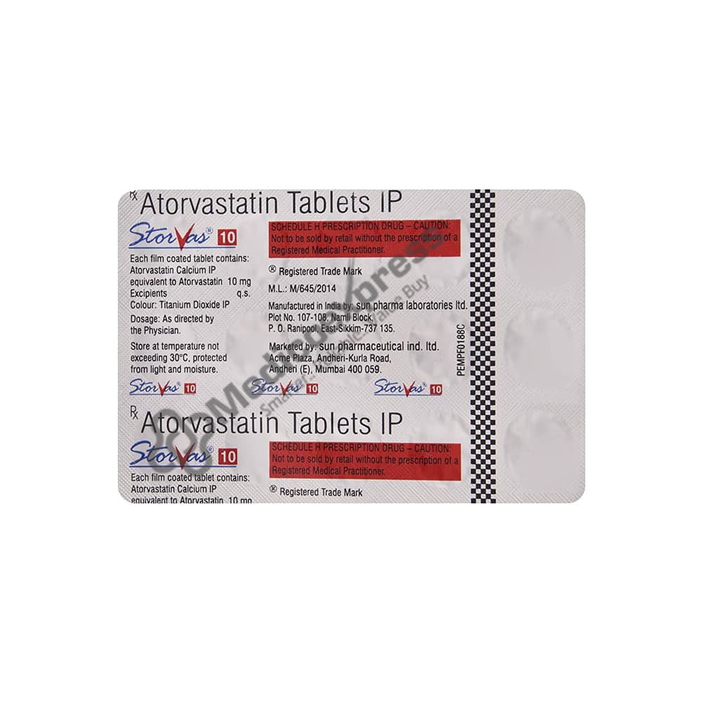 Storvas 10 Tablet 15's belongs to a class of drugs known as statins, which are used to treat high cholesterol levels in the body.Disclaimer:For More Information Contact Your Physician