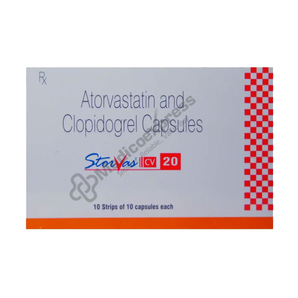 Storvas CV 20 Capsule 10's is a combination drug made up of a blood thinner and a cholesterol-lowering agent that is primarily used to prevent future heart attacks and strokes.Disclaimer:For More Information Contact Your Physician