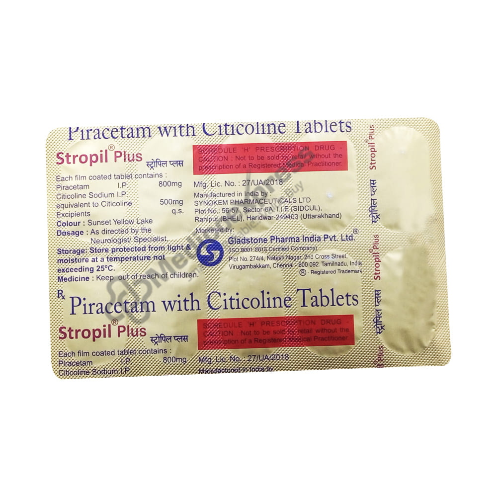Stropil plus 800/500 mg tablet 10's belongs to a class of medications known as central nervous system drugs + which are used to treat acute stroke.Disclaimer:For more information contact your physician