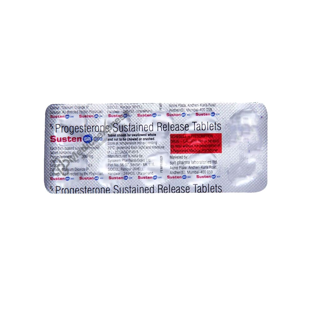 Susten SR 300 Tablet 10's is a female hormone that is primarily used in combination with oestrogen for hormone replacement therapy.Disclaimer:For More Information Contact Your Physician