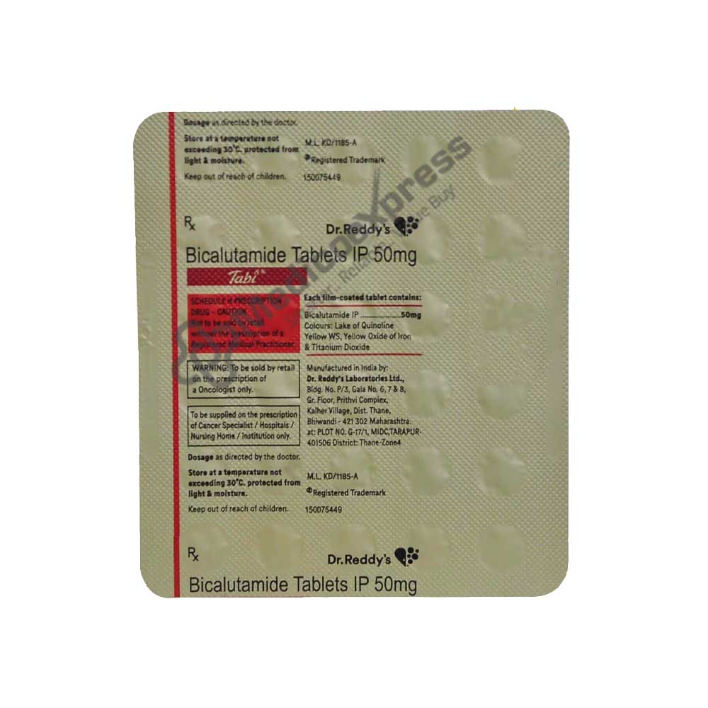 Tabi Tablet 30's belongs to the non-steroidal anti-androgens (NSAAs) medicine class that treats prostate cancer. Only found in men, prostate cancer is a type of cancer of the prostate gland, a tiny gland under the bladder that produces semen. The signs include issues with urinating, discomfort, numbness, or sexual function. Bicalutamide, an ingredient in Tabi 50 Tablet 30, acts by reducing the effects of androgens (male hormones), such as testosterone, which promote the growth of prostate cancer cells. Prostate cancer cells are starved of testosterone by Tabi 50 Tablet 30's, which stops testosterone from attaching to their androgen receptors. The prostate tumour gradually gets smaller as a result of stopping the proliferation of prostate cancer cells.Disclaimer:For more information contact your physician.