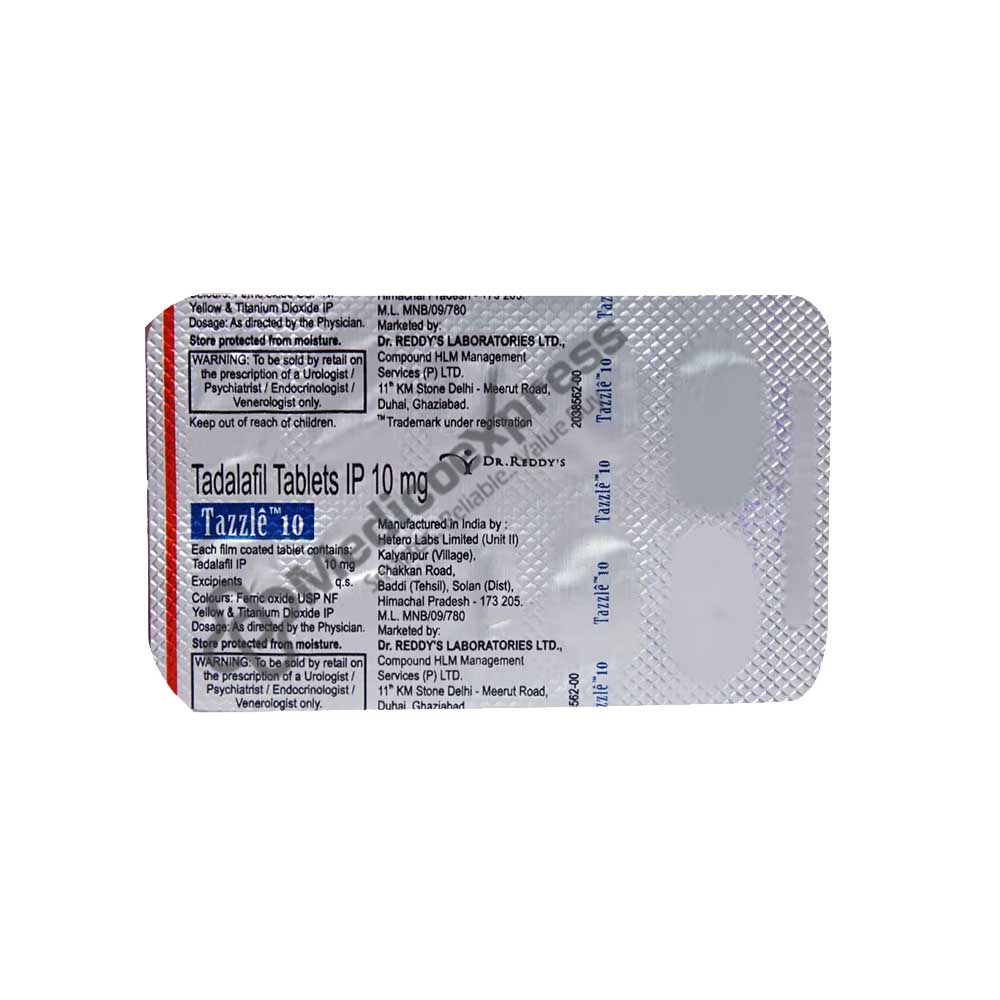 Tazzle 10mg Tablet 10'S is a member of the class of drugs known as phosphodiesterase type 5 (PDE 5) inhibitors. It is used in adult males to treat benign prostatic hyperplasia-related symptoms of erectile dysfunction and urinary symptoms (prostate enlargement causing painful or frequent urination or untentional passing of urine). Impotence, commonly referred to as erectile dysfunction, is a sexual disorder in which a man is unable to maintain the strong erection needed for regular sexual engagement. The reduced blood supply to the penis is the cause of it. Only being sexually excited will help you get an erection while using Tazzle 10mg Tablet 10'S. Since it is not an aphrodisiac (a substance that stimulates sex), it cannot be used to make healthy men feel more or perform better during sexual acts.Disclaimer:For more information contact your physician.