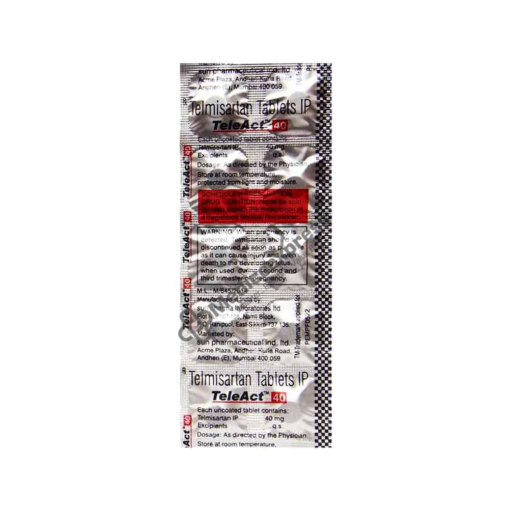 Teleact 40 Tablet 10's Belongs To a Class Of Drugs Called As Angiotensin Ii Receptor Blockers, Which Are Used To Treat Adults With Hypertension (High Blood Pressure).Disclaimer:For More Information Contact Your Physician