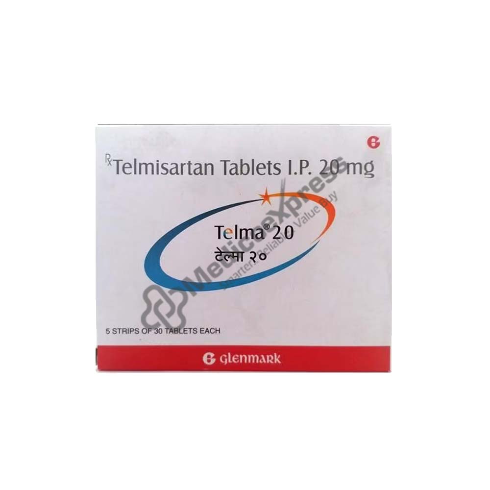 TELMA 20MG TABLET includes Telmisartan, a medication from the class of drugs known as Angiotensin II receptor antagonists. Adults with necessary hypertension are treated with it. Essential hypertension is high blood pressure that is not a symptom of any other illness. It is characterised by signs and symptoms like morning headaches, nosebleeds, irregular heartbeat, changes in vision, buzzing in the ears, fatigue, nausea, and chest pain.Disclaimer : For More Details, Contact Your Physician