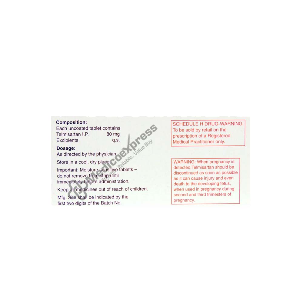 Telma 80 Tablet 15's Belongs To a Class Of Drugs Called As Angiotensin Ii Receptor Blockers, Which Are Used To Treat Adults With Hypertension (High Blood Pressure).Disclaimer:For More Information Contact Your Physician