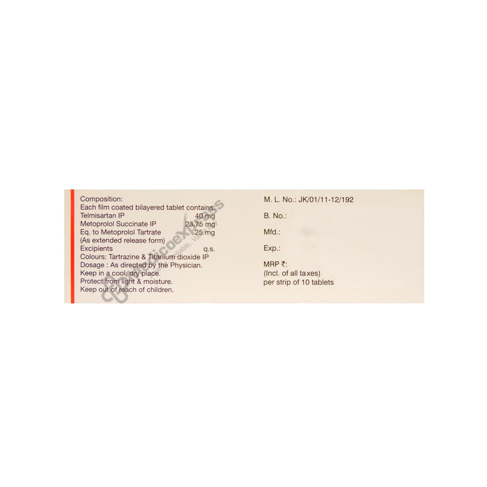 Telvas Beta 25 Tablet 10 is an antihypertensive agent that is used to treat hypertension (high blood pressure). It could also be used to reduce the risk of future heart attacks and strokes. High blood pressure occurs when the force of the blood against the artery walls is excessive, resulting in hypertension. High blood pressure symptoms include headaches, dizziness, nosebleeds, changes in vision, chest pain, weakness, and dyspnea (shortness of breath).Disclaimer:For More Information Contact Your Physician