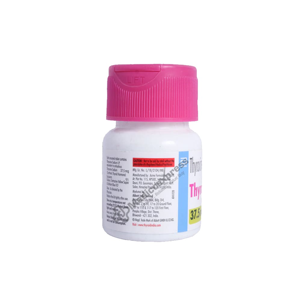 Thyronorm 37.5mcg Tablet 120's is a synthetic thyroid hormone that functions by replacing thyroid hormone in the body when the body's natural thyroid hormone production is insufficient to meet the body's needs. The main use of Thyronorm 37.5mcg Tablet 120's is to treat hypothyroidism, or low thyroid hormone secretion. It contains thyroxine, a synthetic thyroid hormone that is essentially an exact replica of the thyroid hormone produced by our own thyroid gland. Thyroxine aids in replenishing low levels of thyroid hormone and/or relieving thyroid gland strain.Disclaimer : For More Details, Contact Your Physician