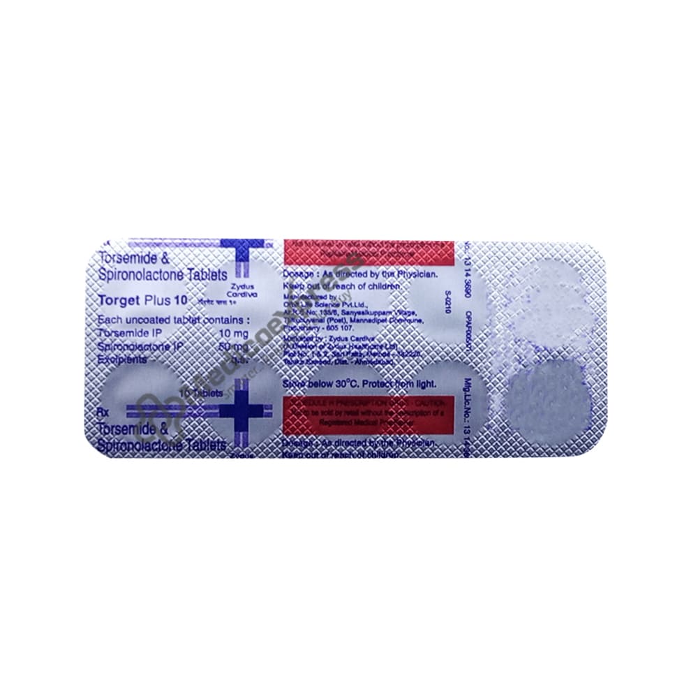 Torget plus 10 tablet is a combination of two medications that is used to reduce excess fluid in the body while maintaining potassium balance.Disclaimer:For more information contact your physician
