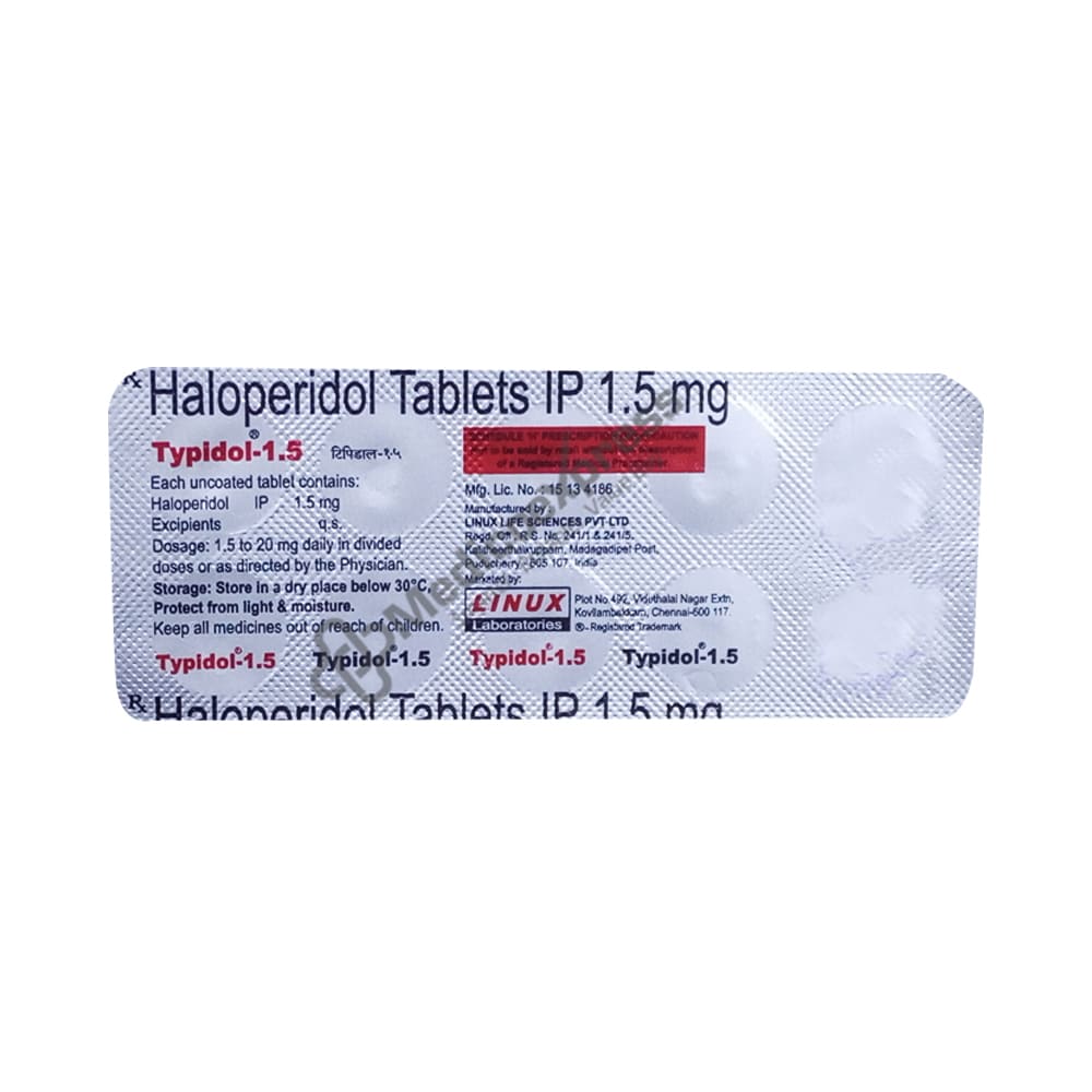Typidol 1.5mg tablet 10's belongs to a class of drugs known as 'antipsychotics.' it is used to treat schizophrenia or psychosis, as well as tourette syndrome.Disclaimer:For more information contact your physician