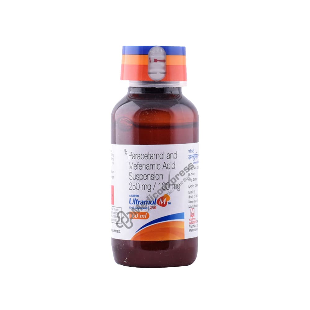 ULTRAMOL M 250 ORAL SUSPENSION is a combination of Mefenamic acid and Paracetamol that belongs to the Non-steroidal Anti-inflammatory Drugs (NSAIDs) and Analgesics & Antipyretics class of medications. It is prescribed for the treatment of childhood fever. It is also used to treat mild to moderate pain, such as headaches, toothaches, joint or muscle pain, and menstrual cramps.Disclaimer : For More Details, Contact Your Physician