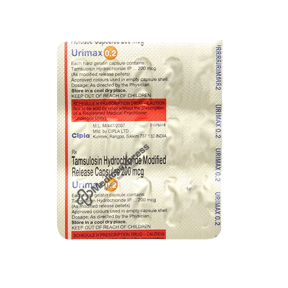 Urimax 0.2 Capsule 15 is an alpha-blocker medication that is primarily used to treat benign prostatic hyperplasia (enlarged prostate) and urinary bladder outlet obstruction.Disclaimer:For More Information Contact Your Physician