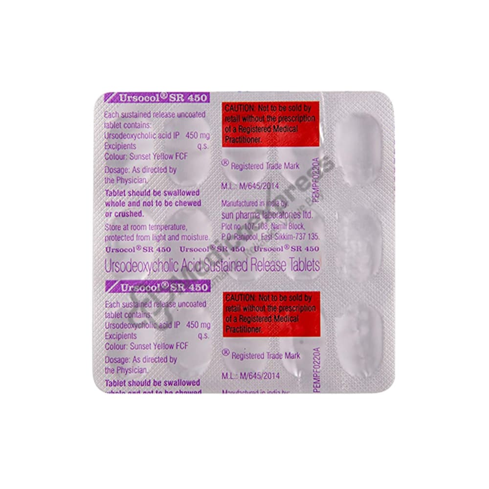 Ursocol SR 450 Tablet 15's is a biliary agent or gall stone dissolution agent that is used to treat gall stones, primary biliary cholangitis (an autoimmune disease of the liver), excess cholesterol in bile, and children over the age of 6 who have biliary and liver diseases caused by cystic fibrosis.Disclaimer:For More Information Contact Your Physician