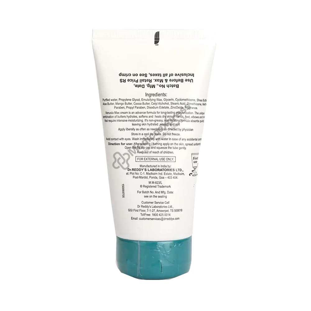 Venusia max cream is a non-greasy cream that protects against skin damage and ageing. It contains shea butter, aloe butter, cocoa butter, and mango butter, all of which help to keep moisture in the skin and increase its water-holding capacity.Disclaimer:For more information contact your physician