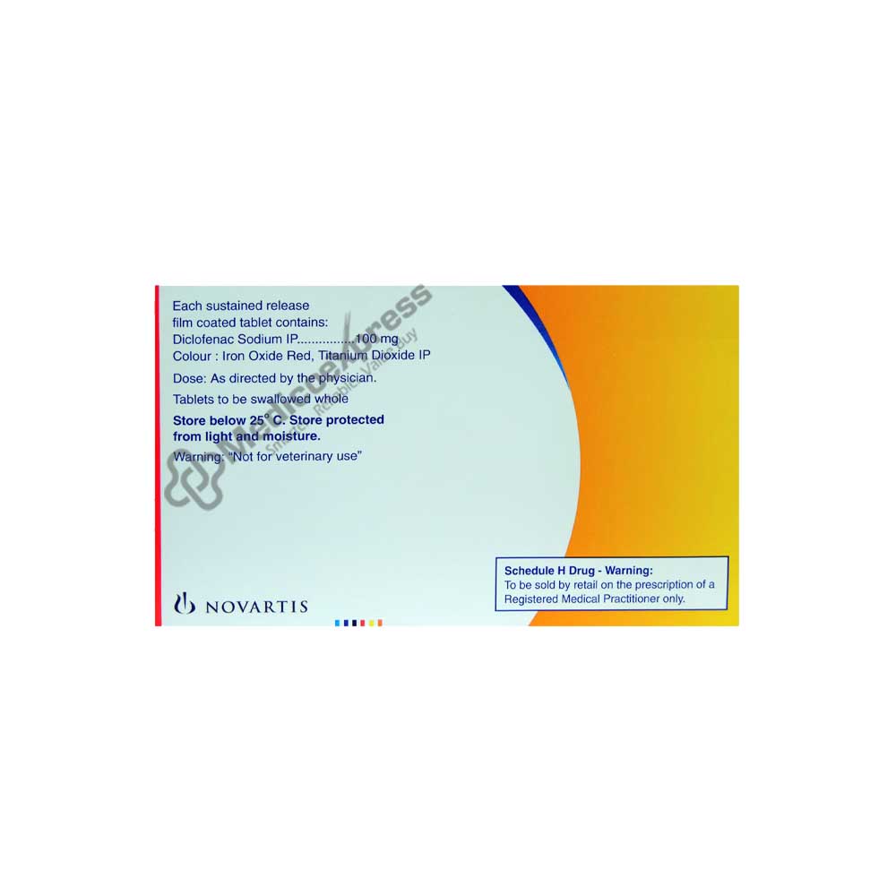 Voveran SR 100 Mg Tablet 15'S is used to treat pain and inflammation brought on by musculoskeletal problems, arthritis, contusions (bruises), post-traumatic pain, and low back pain. Musculoskeletal discomfort can be brought on by osteoporosis, arthritis, fractures, dislocations, issues with the bone structure, or injuries to the bones, joints, tendons, muscles, and ligaments.Diclofenac diethylamine, an ingredient in Voveran SR 100 Mg Tablet 15'S, blocks the action of cyclo-oxygenase (COX) enzymes, a chemical messenger that produces prostaglandin, another chemical messenger. Less prostaglandins are created when COX enzymes are inhibited, which helps to lessen mild to moderate pain and inflammation at the site of damage or injury.Disclaimer:For more information contact your physician.