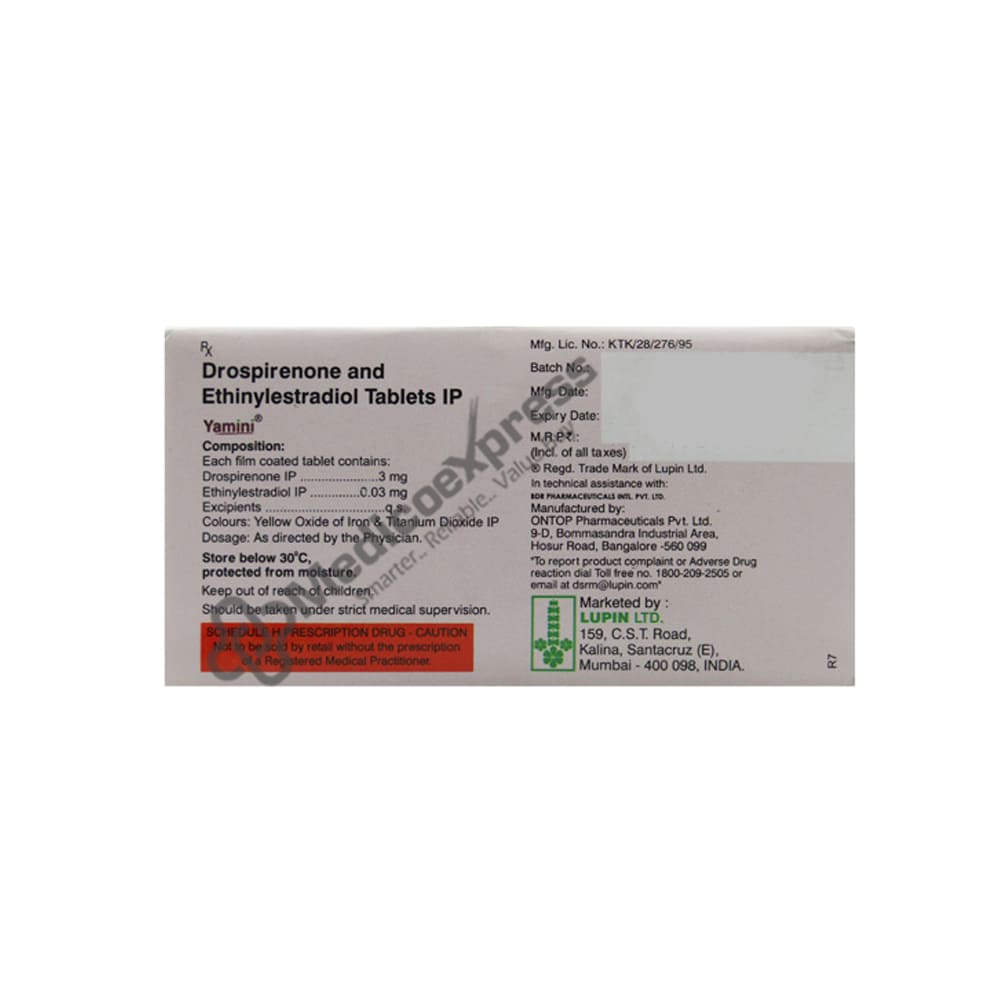 Yamini Tablet 21'S which contains drospirenone and ethinyl estradiol, is a member of the class of drugs known as combined oral contraceptives. It is employed to stop pregnancies (contraception). Female sex hormones made synthetically include ethinyl estradiol and drospirenone (estrogen and progesterone). By preventing the production of the gonadotrophic hormones that cause ovulation, they decrease the likelihood of becoming pregnant (release of a mature egg from ovaries). Additionally, they modify the thickness of cervical mucus (a type of fluid generated by the cervix), making it challenging for the sperm to go inside the uterus, and they lessen the thickness of the uterus' inner lining, making it unsuitable for the foetus to implant and grow. Your normal monthly menstruation cycle may change if you use Yamini Tablet 21'S.Disclaimer:For more information contact your physician.