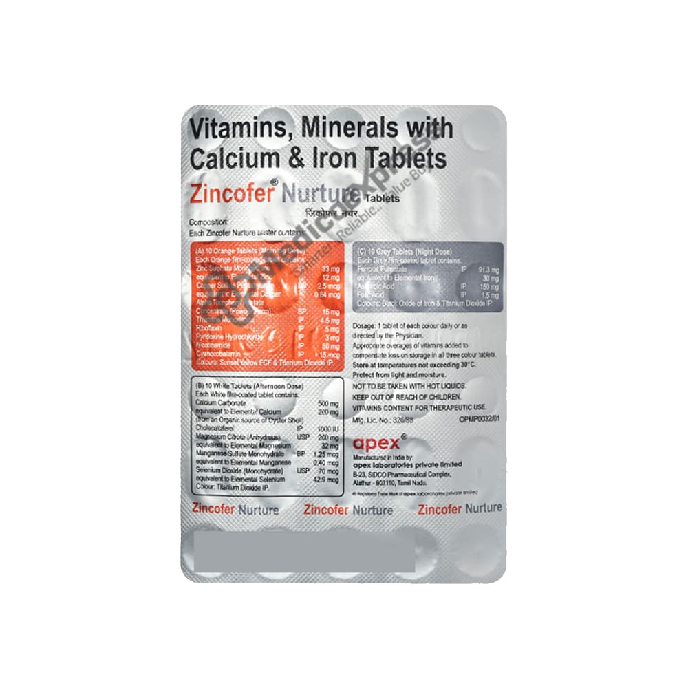 Zincofer Nurture Tablet 30's is a hematinic and nutritional supplement that improves general health and speeds up metabolism. Treatment of nutritional deficiencies can also benefit from it.Disclaimer:For more information contact your physician.