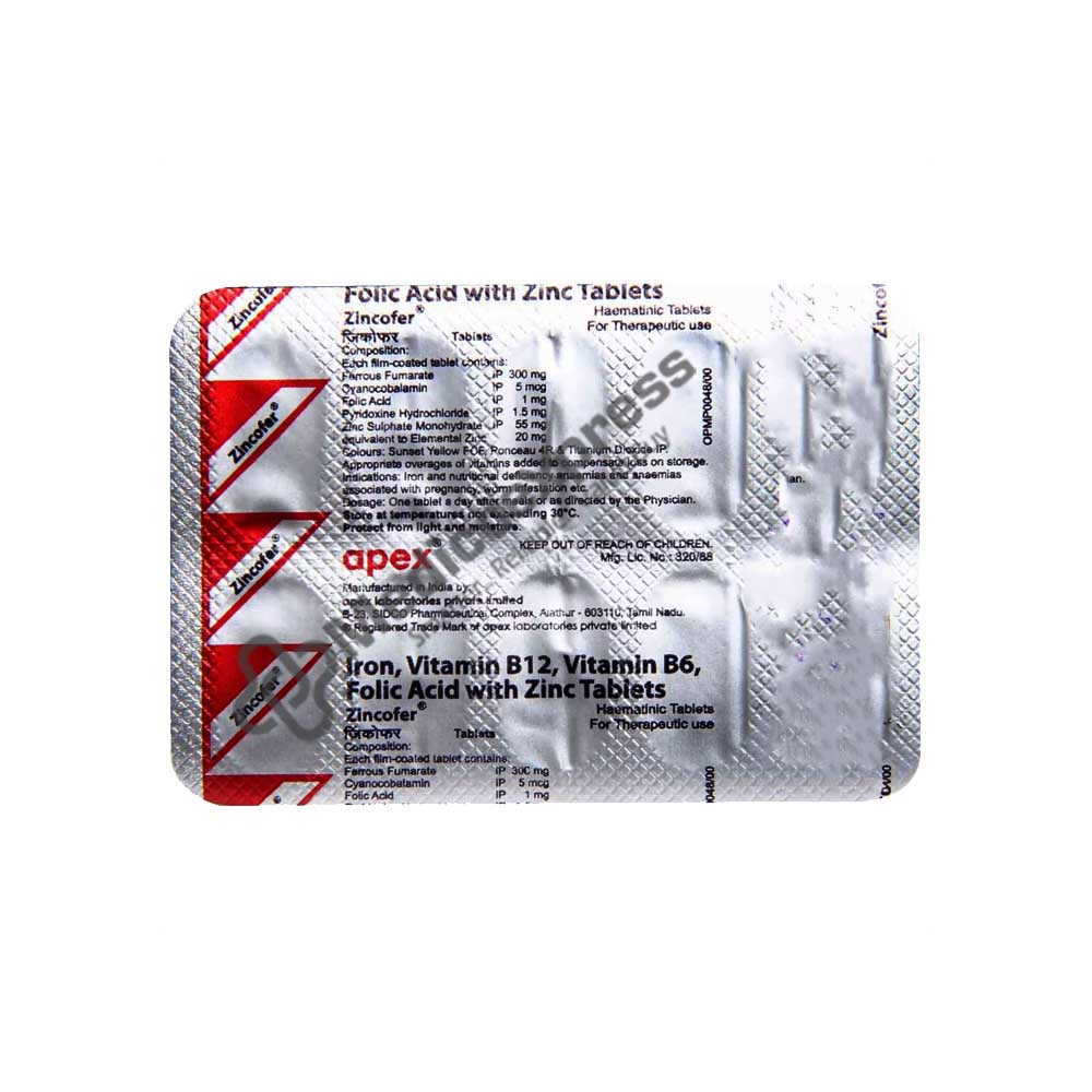 Zincofer Tablet 10's belongs to the class of drugs known as nutritional supplements that are used to treat and prevent nutritional deficiencies. When the body does not absorb or obtain adequate amounts of nutrients from diet, a nutritional shortage develops. Vitamins and minerals are essential for healthy body growth and illness prevention.Disclaimer:For more information contact your physician.